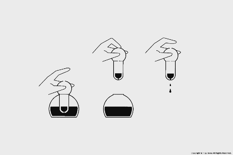 下のガラス器に醤油を入れ、上の部分からスポイトの原理で醤油を注ぎます。