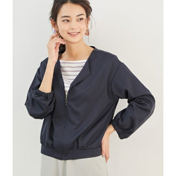 ロペピクニックの【椿オイル加工】ヘンリーネックブルゾン【軽快なレングスでボトムとのバランスも取りやすいブルゾン】カジュアルなジップアップブルゾンを、ふんわりスリーブとキーネックデザインでエレガントにアップデートしました。