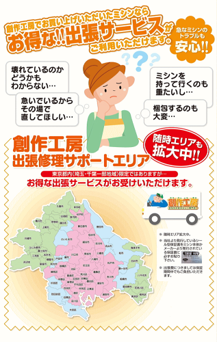 ミシン初心者の方にも安心してご使用いただけるように、当店サポート店舗にて予約制ではございますが、簡単な講習(10分程度)をしております。