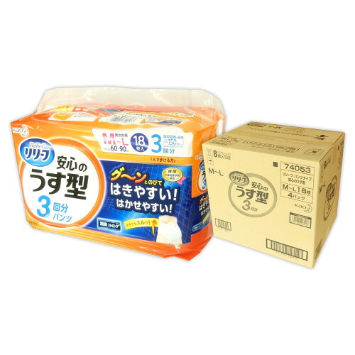 リリーフ 安心のうす型 3回分 パンツタイプ M〜L 18枚 × 4パック 【花王 kao】【74053】